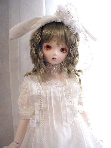 白い肌に白い服が良く似合います。うさみみなボンネットも可愛い〜